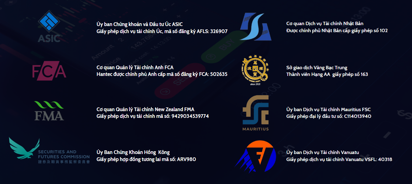 - Cơ quan cấp phép: 12 giấy phép được cấp theo qui định, bao gồm FCA(UK), ASIC(Australia), VSFC(Vanuatu), CGSE(Hong Kong), Kanto Finance Bureau MOF(Japan), …