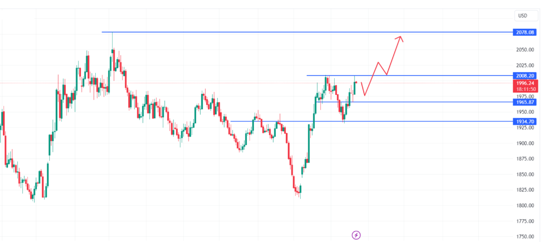 Từ góc độ kỹ thuật, bất chấp kỳ vọng lãi suất Mỹ có thể giảm xuống mức thấp nhất trong 2 tháng, vàng vẫn chưa vượt hiệu quả ngưỡng 2.000 USD/oz. Tính đến ngày 22 tháng 11, giá đã thoái lui sau khi thử nghiệm mức 2.007 USD/oz, cho thấy thị trường vẫn kiên nhẫn chờ đợi thêm tin tức cơ bản tích cực để hỗ trợ xu hướng tăng giá. Nhìn vào biểu đồ ngày của vàng, về mặt kết cấu, xu hướng tăng vẫn không thay đổi. Tuy nhiên, liệu những người chơi vàng có thể tiếp tục hưng phấn hay không phụ thuộc vào sự tăng tốc của đà di chuyển trên biểu đồ ngày. Nếu nó có thể phá vỡ ngưỡng 2.008 USD/oz, thì giá vàng sẽ di chuyển về phía kháng cự đường trung bình động hàng tháng ở mức 2.078 USD/oz. Nhưng cần lưu ý rằng hiện tại, giá vàng đang gặp kháng cự ở ngưỡng 2.009 USD/oz, và có thể có nguy cơ thoái lui ngắn hạn, do đó không nên nên mua ồ ạt ở giai đoạn này. Các ngưỡng hỗ trợ quan trọng bên dưới là khoảng 1.970 USD/oz và 1.945 USD/oz. Nhà đầu tư có thể xem xét mua khi giá giảm vì rủi ro thấp hơn. Chỉ cần không xuyên thủng mức 1.900 USD/oz, xu hướng tăng giá chung vẫn tích cực.